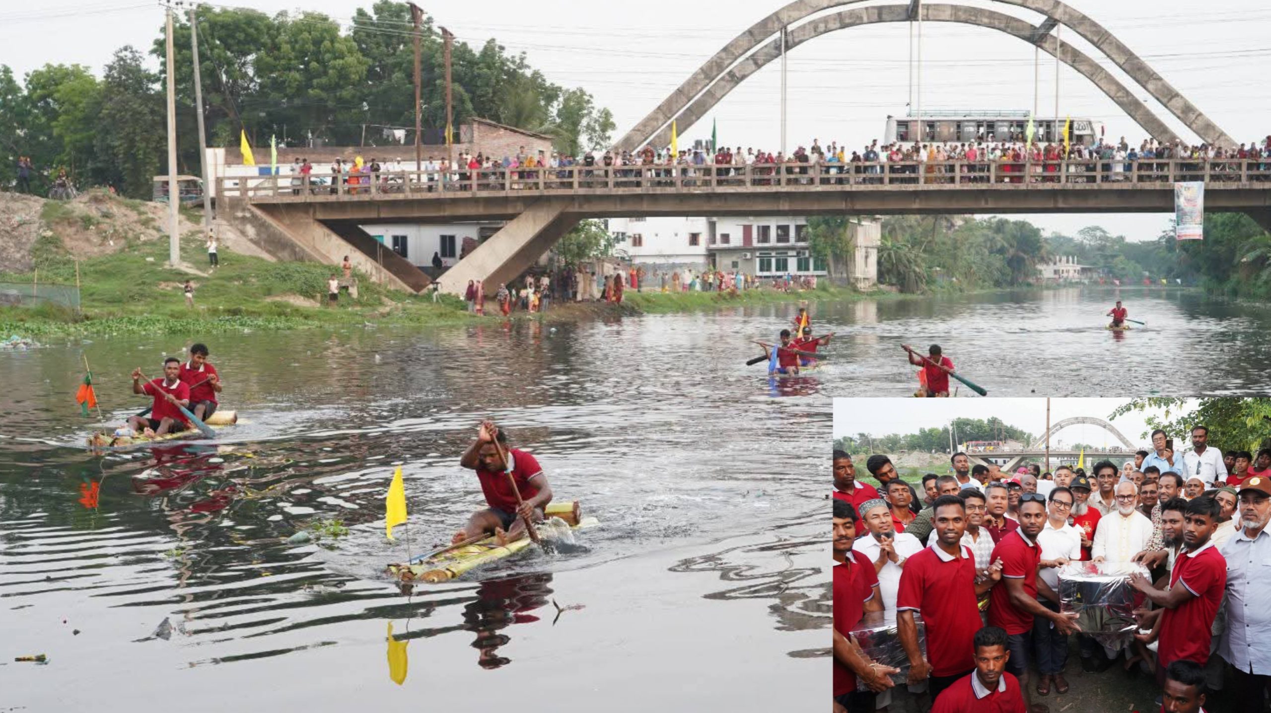 খুলনা মহানগরীর ময়ূর নদে প্রথমবারের মতো অনুষ্ঠিত হলো গ্রামবাংলার ঐতিহ্যবাহী ভেলা বাইচ প্রতিযোগিতা। শুক্রবার (২৪ এপ্রিল) বিকেল ৪টায় আয়োজিত এ প্রতিযোগিতা ঘিরে নদীর দুই তীর ও সেতুতে নেমে আসে দর্শকদের ঢল।