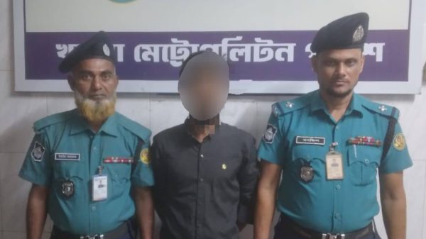 খুলনা নগরীর রূপসা স্ট্যান্ড রোড এলাকায় ছিনতাইয়ের ঘটনায় খুলনা মেট্রোপলিটন পুলিশের (কেএমপি) অভিযানে এক যুবককে গ্রেফতার করা হয়েছে। গ্রেফতারকৃতের নাম নয়ন শেখ (১৯)। সে খুলনা সদর থানার বেলায়েত হোসেন সড়কের
