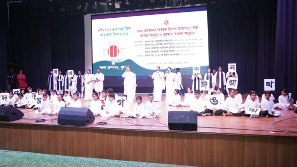 মহান শহিদ দিবস ও আন্তর্জাতিক মাতৃভাষা দিবস ২০২৬ উপলক্ষে খুলনা জেলা শিল্পকলা একাডেমি মিলনায়তনে বিশেষ আলোচনা সভা, কবিতা আবৃত্তি ও পুরস্কার বিতরণী অনুষ্ঠান অনুষ্ঠিত হয়েছে। শনিবার বেলা ১১টায় আয়োজিত এ